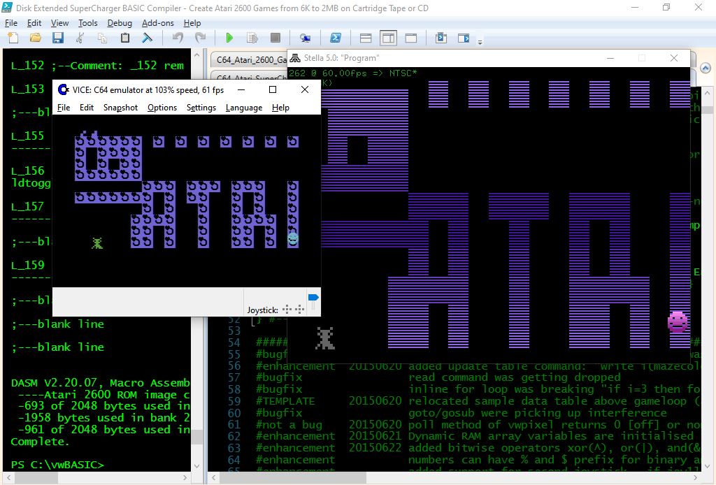 Read through the example programs BASIC listings to learn more about how they work and have fun writing your own BASIC games and demos for the C64 and the Atari 2600!