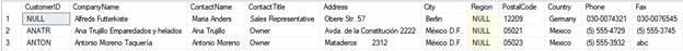 <row CustomerID="ALFKI" CompanyName="Alfreds Futterkiste" ContactName="Maria Anders" ContactTitle="Sales Representative" Address="Obere Str. 57" City="Berlin" PostalCode="12209" Country="Germany" Phone="030-0074321" Fax="030-0076545"/><row CustomerID="ANATR" CompanyName="Ana Trujillo Emparedados y helados" ContactName="Ana Trujillo" ContactTitle="Owner" Address="Avda. de la Constitución 2222" City="México D.F." PostalCode="05021" Country="Mexico" Phone="(5) 555-4729" Fax="(5) 555-3745"/><row CustomerID="ANTON" CompanyName="Antonio Moreno Taquería" ContactName="Antonio Moreno" ContactTitle="Owner" Address="Mataderos 2312" City="México D.F." PostalCode="05023" Country="Mexico" Phone="(5) 555-3932" Fax="abc"/>'